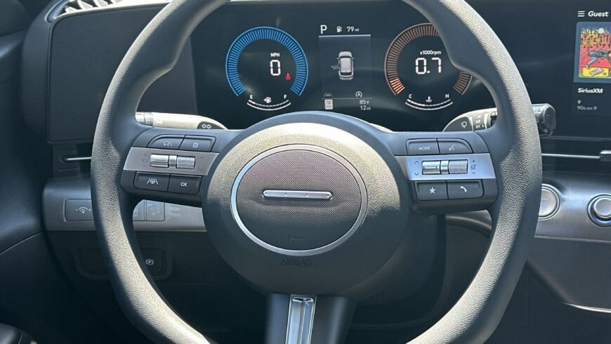 Inside, the 2025 Hyundai Kona SE offers a tech-forward cabin highlighted by a large 12.3-inch touchscreen infotainment system, wireless Android Auto and Apple CarPlay, Bluetooth, OTA software updates, and a 6-speaker premium audio system. Remote keyless entry, proximity key, push-button start, and remote start enhance daily convenience.
